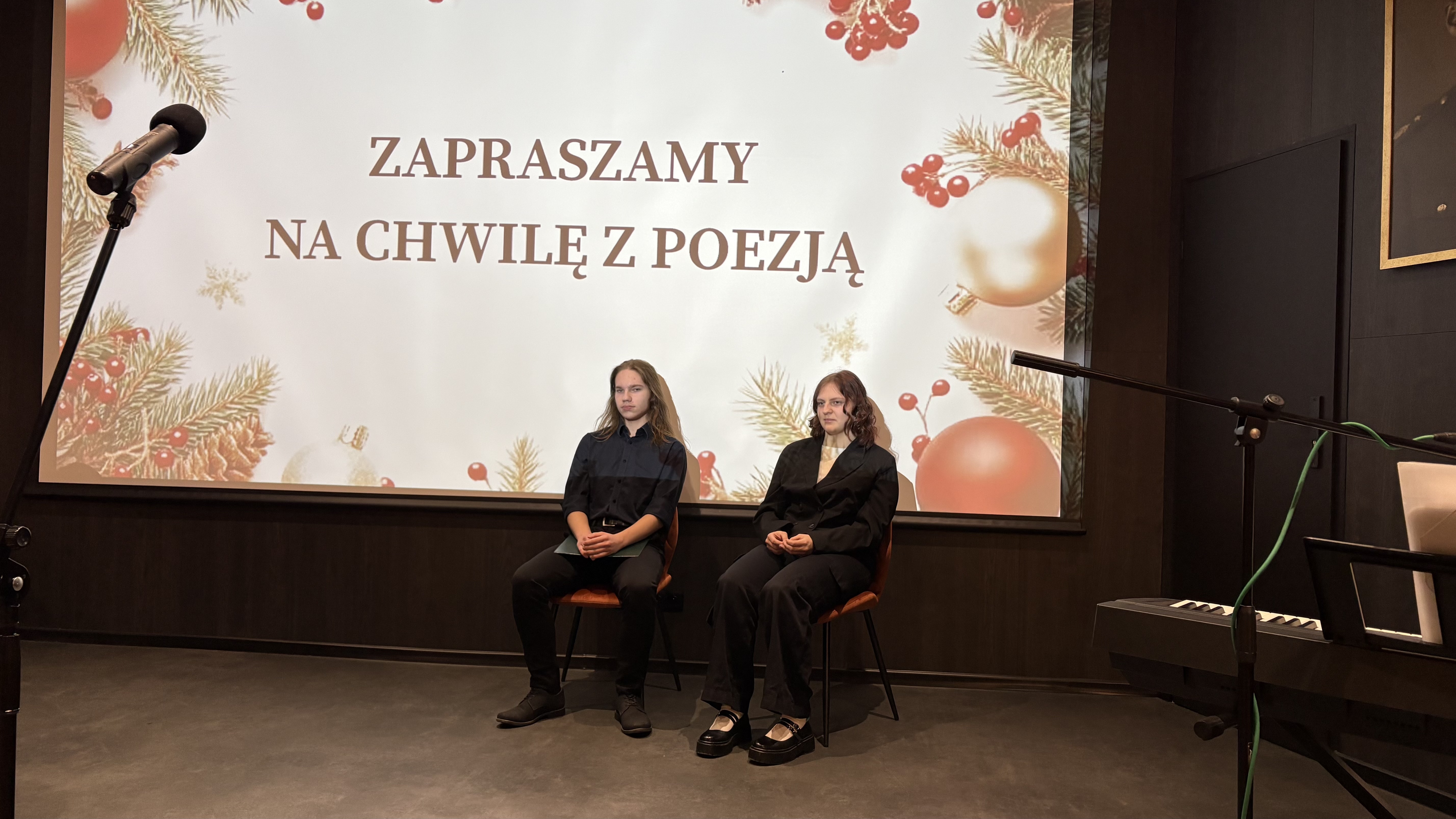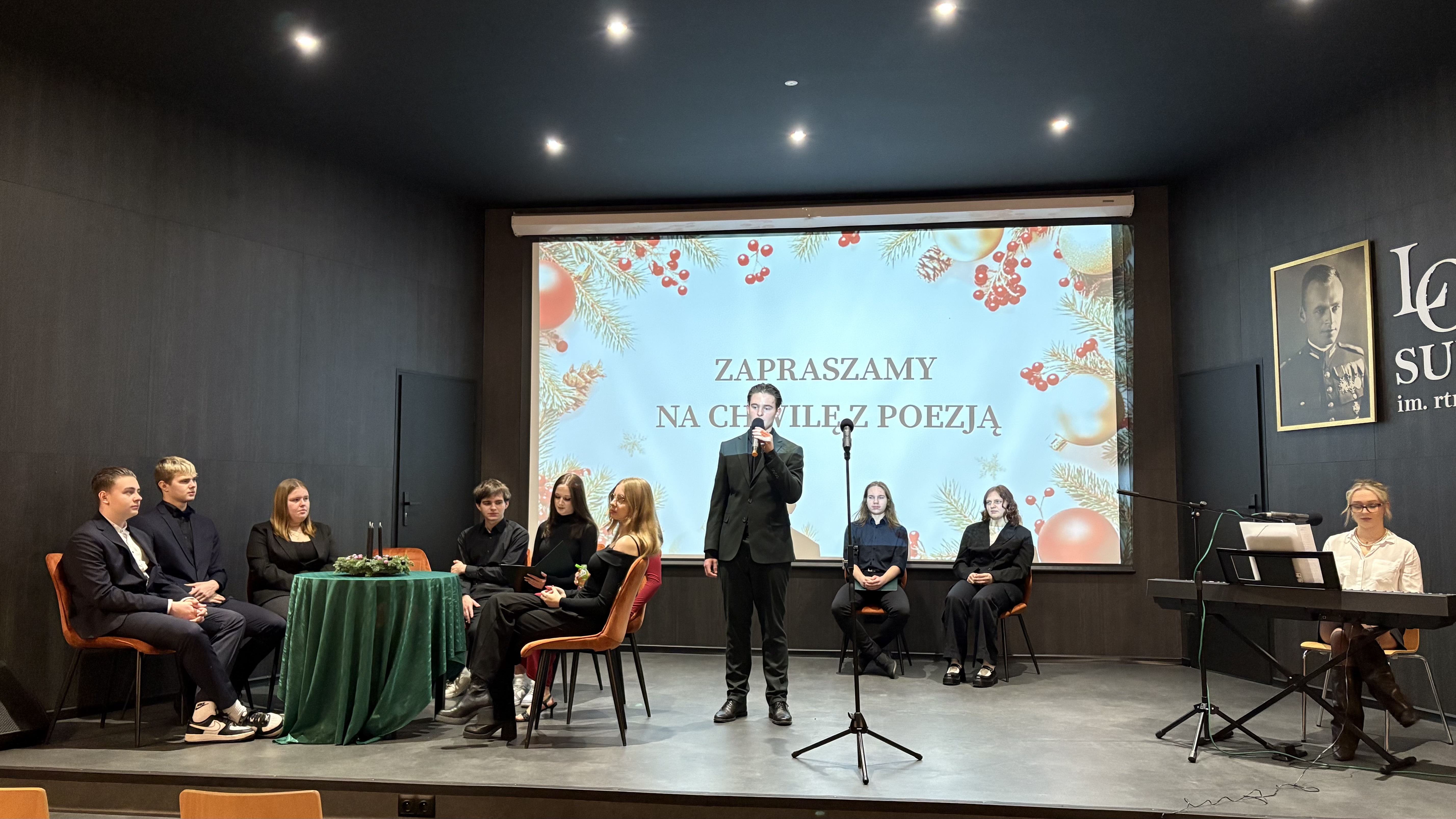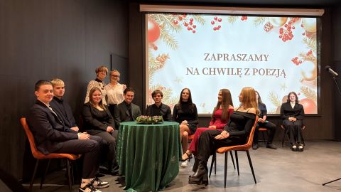 Siłę poezji potęgowały pięknie wykonane kolędy (min, Uciekali” z musicalu „Metro”, „Całą noc padał śnieg” czy „Kolęda dla nieobecnych” Preisnera) oraz tematyczna prezentacja multimedialna.