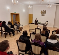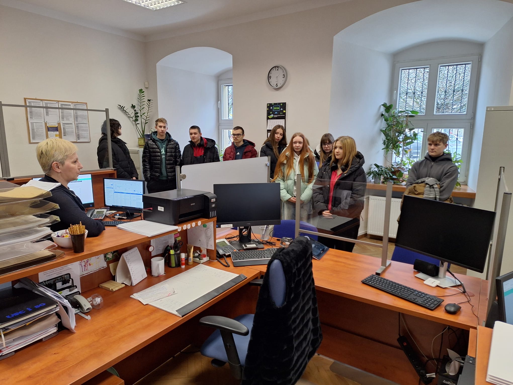 27 stycznia, kolejnym punktem wizyty było spotkanie z kierownikiem Urzędu Stanu Cywilnego, panią Moniką Wachowską, która omówiła zadania USC oraz procedury związane z rejestracją aktów stanu cywilnego. Uczniowie dowiedzieli się, jakie znaczenie mają akty urodzenia, małżeństwa i zgonu w życiu obywateli, a także poznali zasady funkcjonowania Biura Obsługi Interesanta, w tym zapoznali się z procedurą wyrabiania dowodu osobistego.