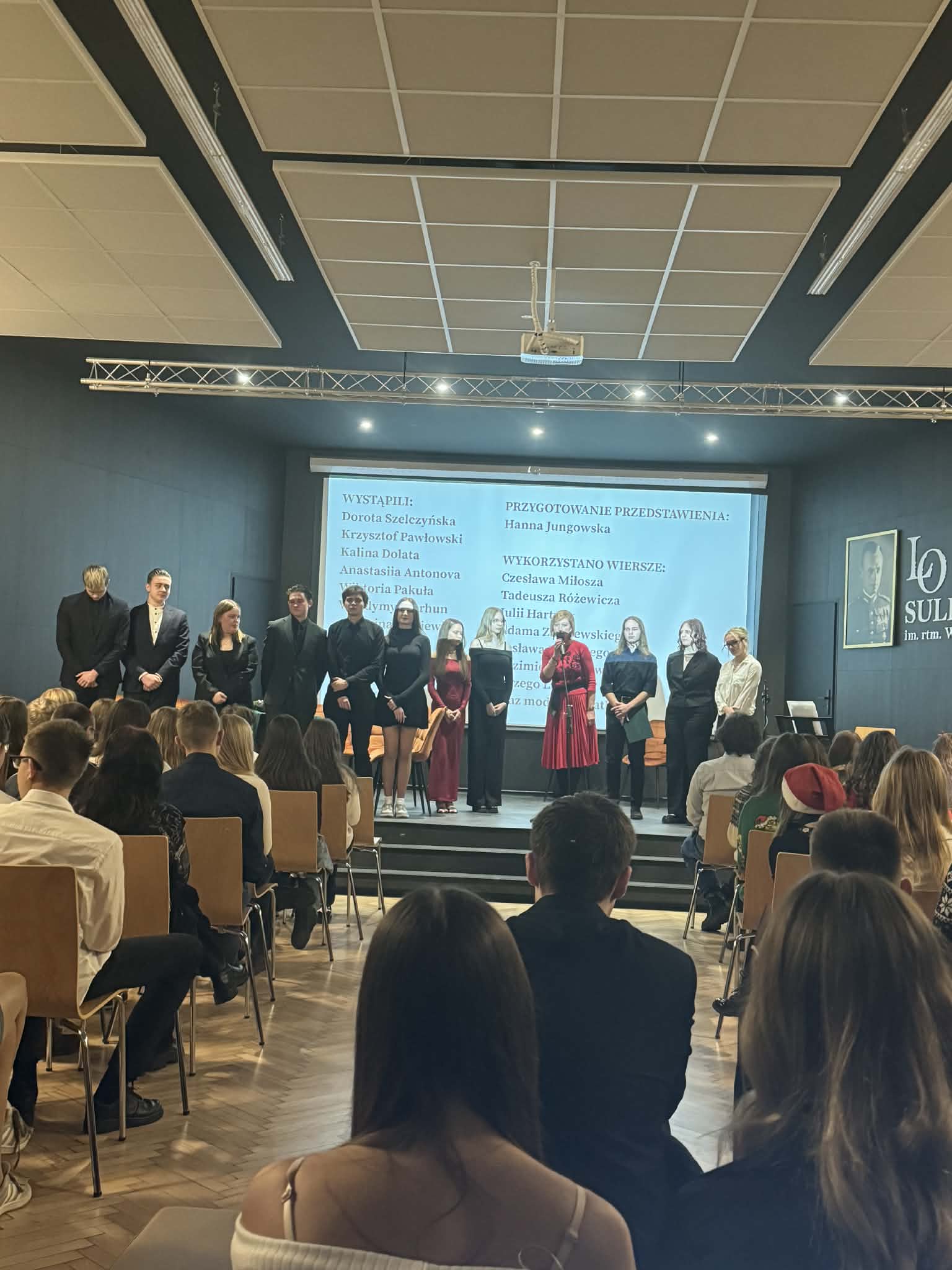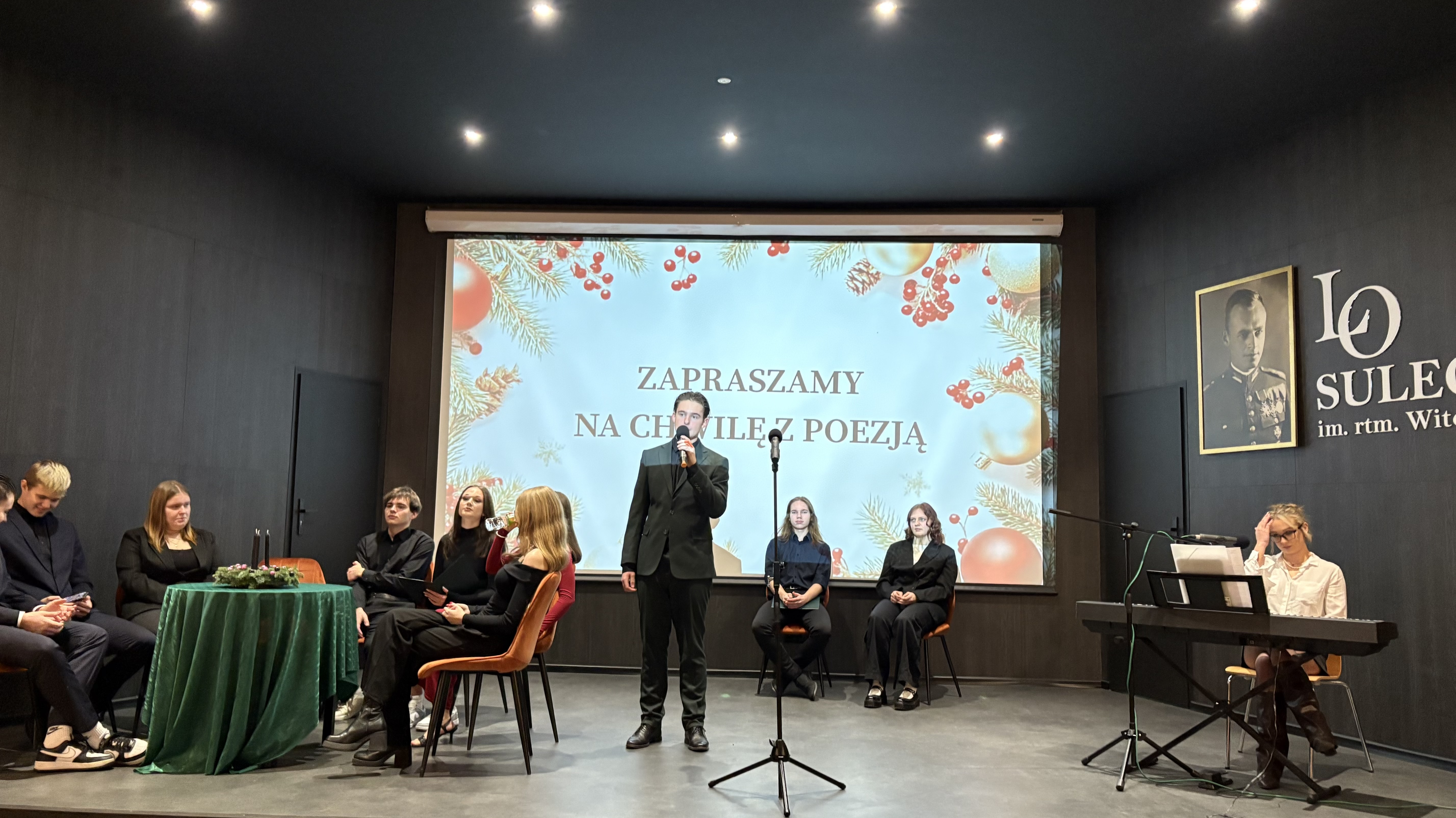 Siłę poezji potęgowały pięknie wykonane kolędy (min, Uciekali” z musicalu „Metro”, „Całą noc padał śnieg” czy „Kolęda dla nieobecnych” Preisnera) oraz tematyczna prezentacja multimedialna.