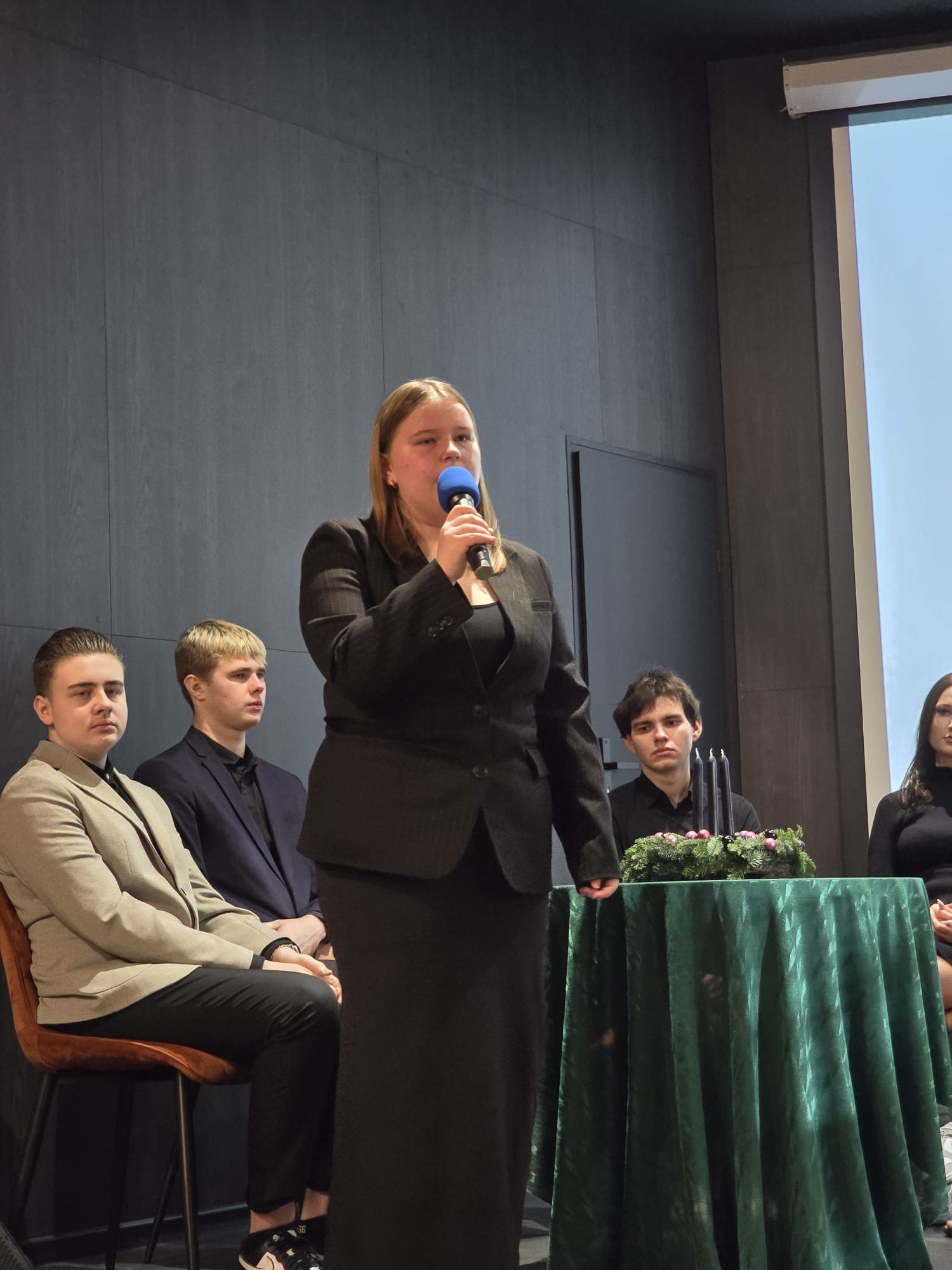 W ostatnim dniu nauki szkolnej przed przerwą świąteczną, jeszcze przed klasowymi wigiliami uczniowie klasy III h wzmocnieni dźwięcznym głosem koleżanki z klasy III a zaprezentowali szkolnej społeczności swój bożonarodzeniowy występ.