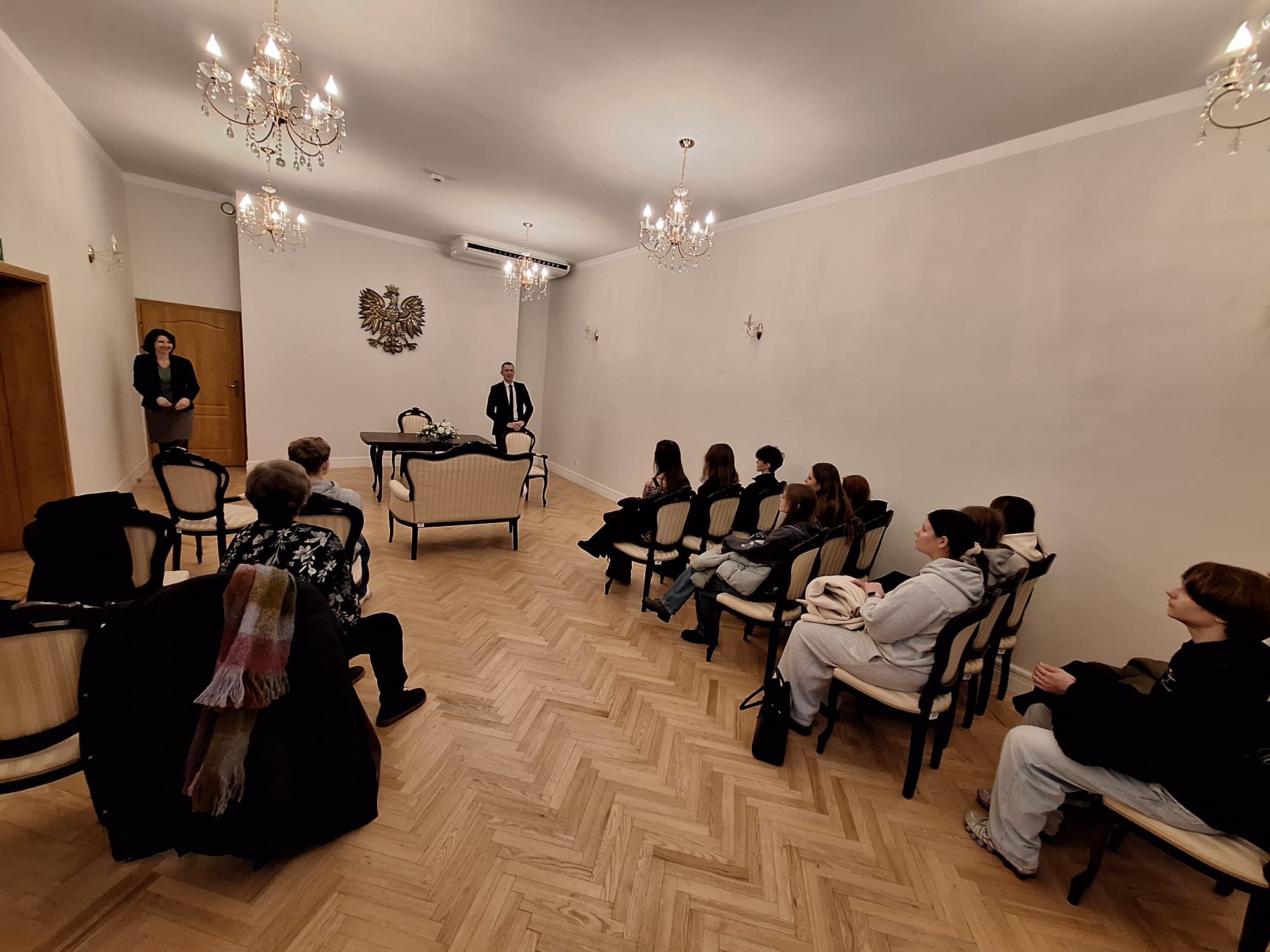 27 stycznia, kolejnym punktem wizyty było spotkanie z kierownikiem Urzędu Stanu Cywilnego, panią Moniką Wachowską, która omówiła zadania USC oraz procedury związane z rejestracją aktów stanu cywilnego. Uczniowie dowiedzieli się, jakie znaczenie mają akty urodzenia, małżeństwa i zgonu w życiu obywateli, a także poznali zasady funkcjonowania Biura Obsługi Interesanta, w tym zapoznali się z procedurą wyrabiania dowodu osobistego.